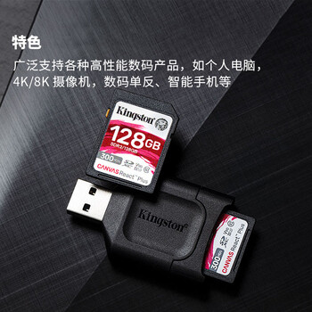 金士顿(Kingston)128GB SD存储卡 U3 V90 8K 相机内存卡 高速sd卡大卡 读速300MB/s 写速260MB/s