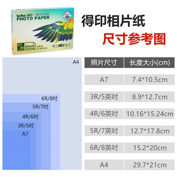 得印(befon)4R 绒面照片纸 RC防水速干 240g 喷墨打印机照片相纸 50张/包 彩色打印相片纸