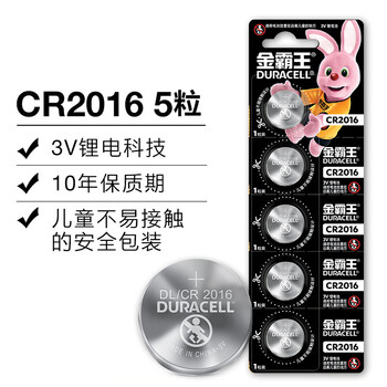 金霸王(Duracell)CR2016纽扣电池5粒装 3V锂电池 适用丰田比亚迪奔驰景逸等汽车钥匙 手表电池等
