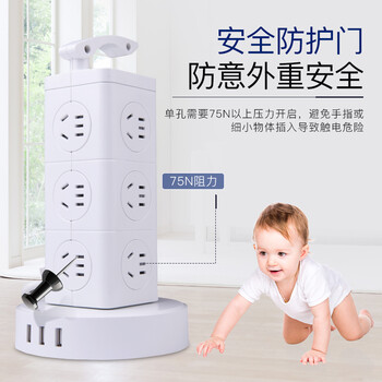 慈慈 USB智能立式插座魔立方插座塔式插座插排插线板 12位3层多孔新国标总控排插接线板 全长2.8米