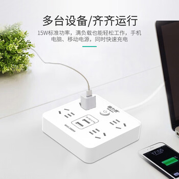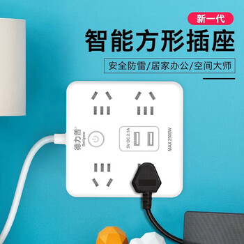 德力普(Delipow) 插排 usb插座 智能新国标排插/插线板/接线板/拖线板 2USB口+4孔位 总控全长5米
