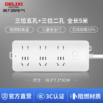 德力西(DELIXI) 3C认证国标插座/插线板/插排/排插/拖线板/插板/接线板 6位组合总控开关 5米