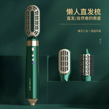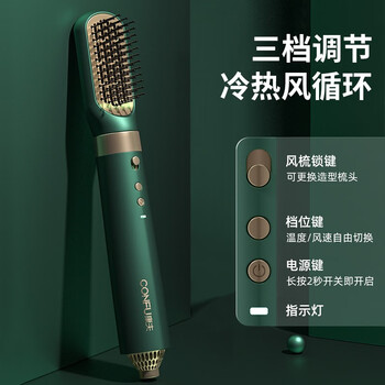 康夫(CONFU)直发梳 多功能多合一烫发棒两用 蓬松造型 卷发梳 恒温护发直卷发器 绿色KF-3136