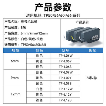 硕方线号机贴纸 9mm白色不干胶纸带TP60i TP66i打号机打码机打字机色带贴纸TP-L09W