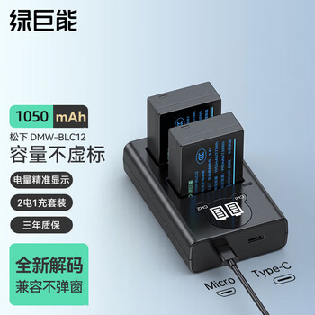 绿巨能(llano)适用松下G7相机DMW-BLC12电池充电器G97/FZ1000/G85/G6/GH2/FZ250/FZ200/FZ300数码相机双充配件
