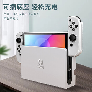 毕亚兹 Switch OLED保护壳switch oled游戏机保护套 游戏周边 全包纤薄款透明硬壳分离式防摔抗压