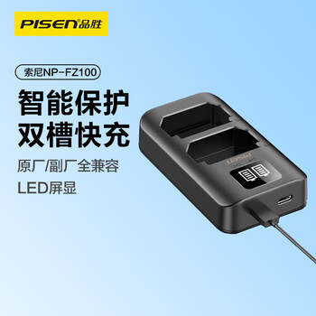 品胜 索尼NP-FZ100相机电池充电器 适用a7m4 a7m5 ILCE-7R a7m3 m4 a7c2 a7r3 a7rIII a6600双槽座充电