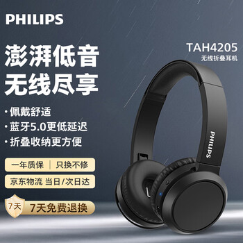 飞利浦(PHILIPS)【升级版头戴式蓝牙耳机】TAH4205 无线运动耳机网课电脑笔记本耳麦 学生办公必备礼物 黑