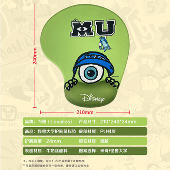 飞遁LESAILES怪兽大学 硅胶鼠标垫 护腕女生大号 动漫卡通护手腕托垫 蓝绿色210*240*24mm