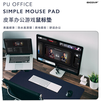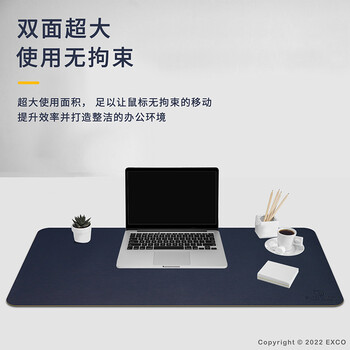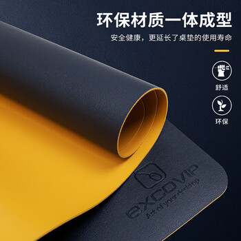 宜适酷(EXCO)80x40鼠标垫大号办公桌垫 防水皮革书桌垫写字垫电脑垫子键盘皮质桌布垫双面游戏垫 蓝和黄3762