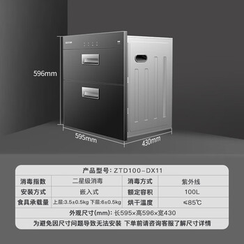 百得(BEST)华帝出品消毒柜家用嵌入式100L大容量厨房餐具碗柜家用母婴双层消毒柜二星级DX11
