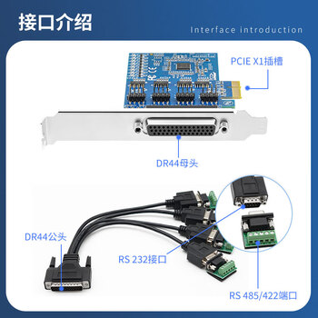 EB-LINK 工业级PCI-E转4口485/422串口卡高速多口1拖4串口扩展卡9针com口电压抑制防雷浪涌保护配接线柱