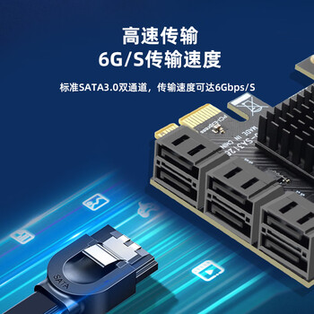 品名:PCI-E X1转SATA3.0扩展卡 接口:6*SATA3.0 功能参数:支持IDE/AHCI模式,符合PCIE2.0规范,全速6gbps带宽输出。