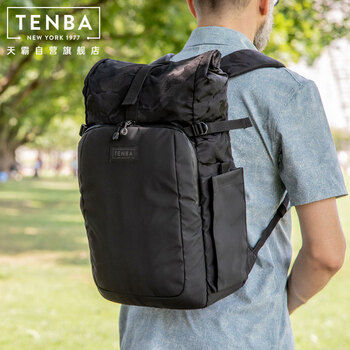 天霸美国TENBA 摄影包双肩户外防水休闲单反微单相机包上下分仓 富尔顿Fulton v2 迷彩黑色14L 637-735