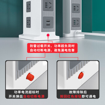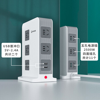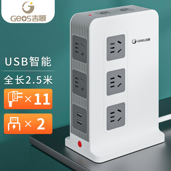 吉顺立式插座办公牛插排桌面USB排插多功能接插线板防过载电涌新国标分控 2.5米