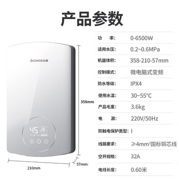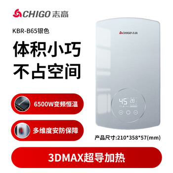 志高(CHIGO)即热式电热水器6500W电热水器小厨宝家用集成洗澡免储水多功率可调防漏电 银色 KBR-B65