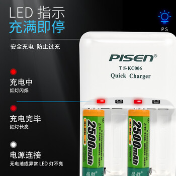 品胜 充电电池5号 五号AA1.2V电池充电器套装 适用遥控器/玩具/闪光灯/话筒/游戏手柄 4粒快充