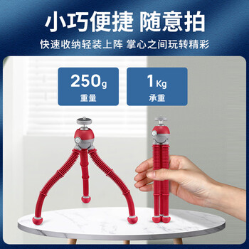 宙比(JOBY)JB01758-BWW 中号柔性八爪鱼三脚架套装单反微单运动相机手机自拍杆桌面直播支架双冷靴带夹红色