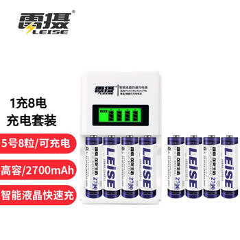 雷摄(LEISE)充电电池5号五号8节智能液晶套装(8节5号2700毫安电池+4槽液晶充电器)黑悟空游戏手柄可用电池