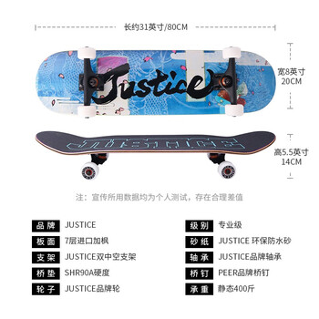 JUSTICE沸点滑板成人专业板青少年儿童滑板初学者四轮刷街代步滑板 凯风