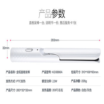 金稻(K-SKIN)电卷发棒 直发器夹板直发卷发两用卷发神器KD3886A白色