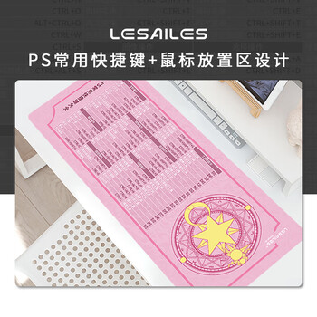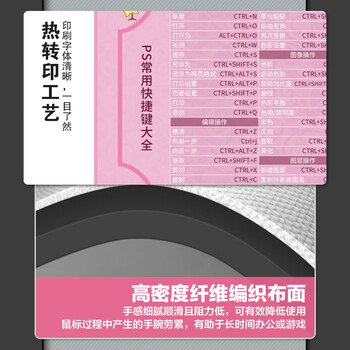 飞遁 鼠标垫电竞游戏办公 纯色专用大号电脑桌垫 PS快捷键大全 顺滑编织包边加厚 800*300*3mm 粉色