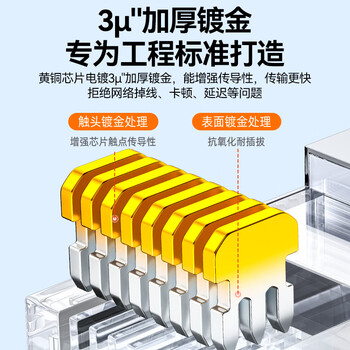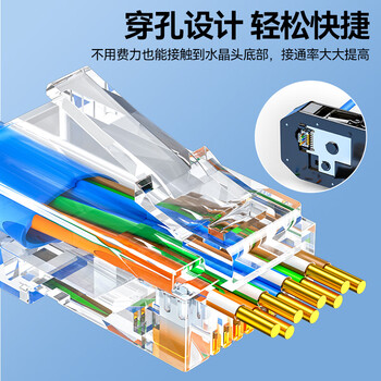 山泽 六类直通穿孔式水晶头 8P8C镀金千兆网络连接器 RJ45网线接头 CAT6类通孔水晶头 100个 CKT6100
