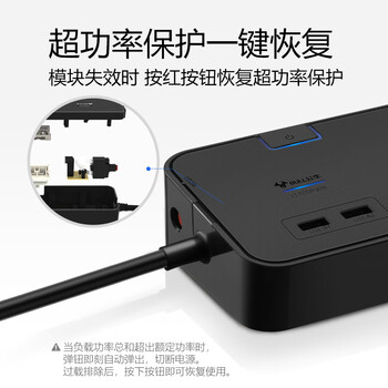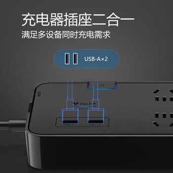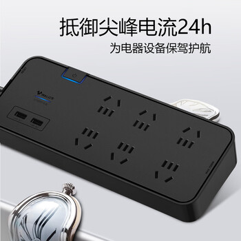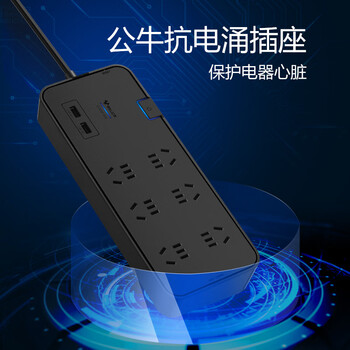 公牛(BULL)抗电涌抗浪涌防雷电竞插座/插线板/插排/排插/接线板 6位+2USB总控全长3米 保护电器GN-H306U