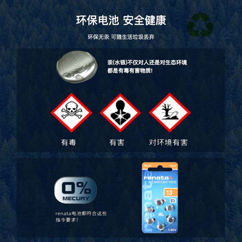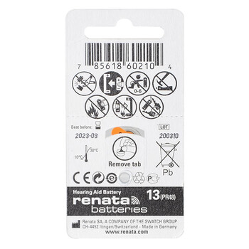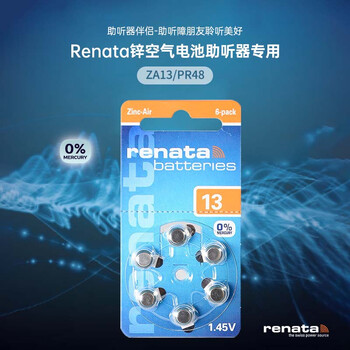 瑞纳达(RENATA)ZA13/PR48助听器电池 1.45V锌空气钮扣电池6粒适用峰力/西万博/西门子/瑞声达/奥迪康品牌