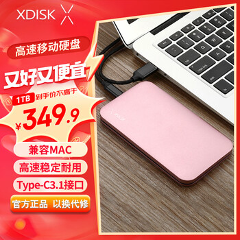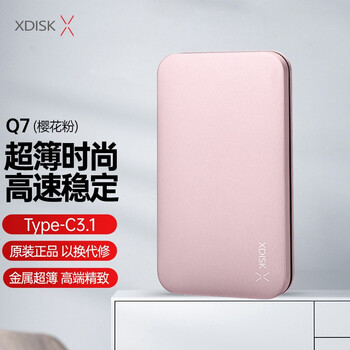 小盘(XDISK)1TB Type-C3.1移动硬盘Q系列2.5英寸 樱花粉 高速全金属8.9mm超簿便携精英款 稳定耐用