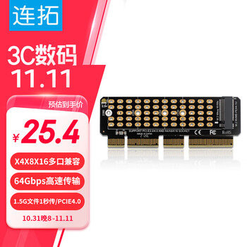 连拓 PCIE转M.2 NVMe拓展卡兼容Pcie4.0/3.0适用台式主机电脑机箱x4/x8/x16扩展SSD固态硬盘转接卡