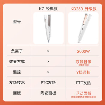 金稻夹板直板夹负离子改善毛躁卷发棒高颅顶卷直两用熨板发型电夹板烫发棒KD280白色便携出游生日礼物