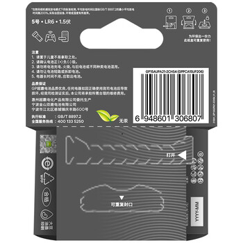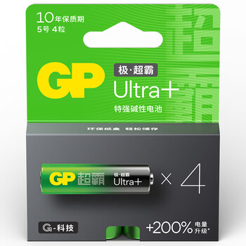 超霸(GP)5号4粒1.5V超强碱性 智能锁电子指纹锁密码锁防盗门专用电池/耳温枪/血氧仪/鼠标AA/R6P 商超同款