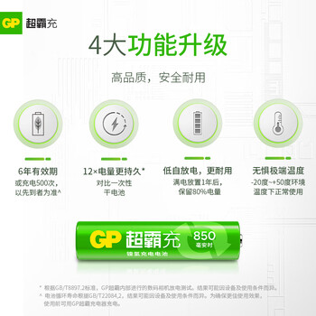 超霸(GP)充电电池7号4粒850mAh镍氢电池适用相机/闪光灯/游戏手柄/血压计/遥控玩具车/鼠标/键盘