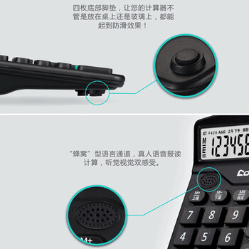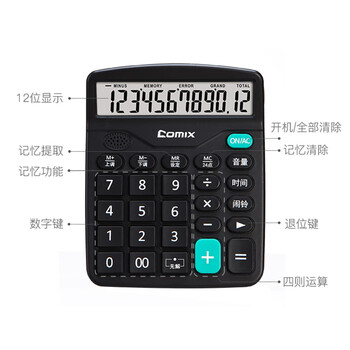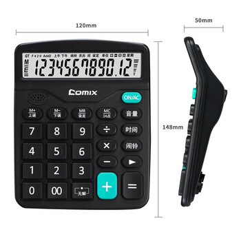 齐心(Comix) 桌面办公计算器 12位大屏幕语音计算机 办公文具用品 黑色 C-9680