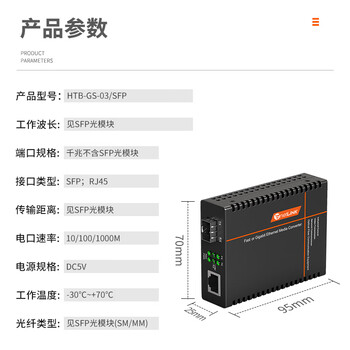 netLINK光纤收发器HTB-GS-03/SFP(工程电信级)x1台、电源适配器x1个、合格证说明书x1