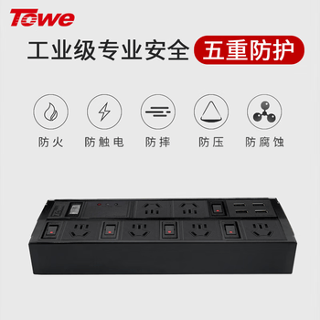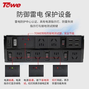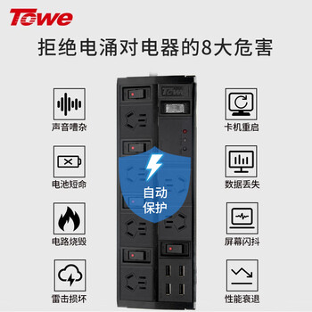TOWE同为防浪涌防雷插座排插线板6位总控带分控4USB接线板防电涌过载保护PDU插排