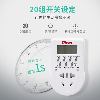 同为(TOWE)10A电子式节能一周循环定时器智能插座时间控制器定时插座 TW-ED10W