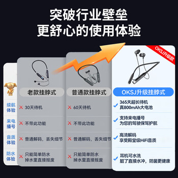 OKSJ蓝牙耳机运动颈挂式无线挂脖式降噪 适用于华为/小米手机防水跑步长续航5.3ENC游戏