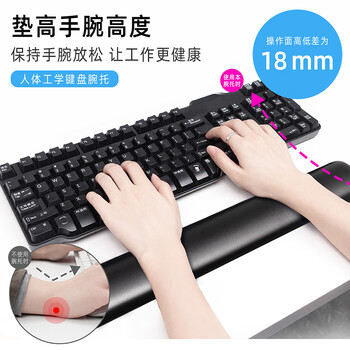 宜适酷(EXCO)皮质104键盘托人体工学手腕托 键盘垫手腕垫 鼠标垫护腕硅胶皮质掌托键盘手枕 黑色6098