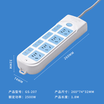 吉顺排插座插线板带线插排电源延长线插头接线板拖线板电插板新国标 总控开关1.8米