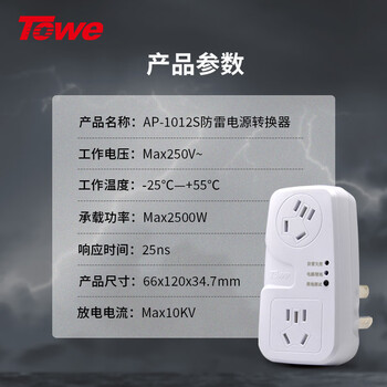 TOWE同为(TOWE)一转二路防雷电源转换器 10A浪涌保护插座插头 AP-1012S