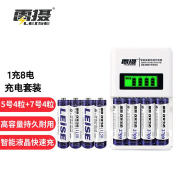 雷摄(LEISE)充电电池5号7号8节智能液晶套装(4节5号+4节7号电池+4槽液晶充电器)适用:麦克风/玩具#957A