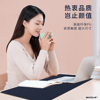宜适酷(EXCO)90X45鼠标垫超大号办公桌垫 防水皮革书桌垫写字垫电脑垫键盘皮质桌布垫双面游戏垫 蓝和黄3765