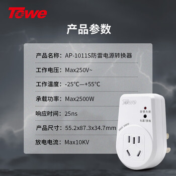 TOWE同为家用办公专业防雷电源转换器 10a单路防浪涌插座国标插头AP-1011S