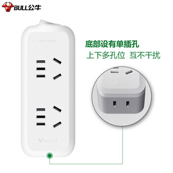 公牛(BULL)插座扩展器一转三/一转多插座/转换插头/转换器/插排 适用卧室、厨房 3位总控竖向 GN-93120