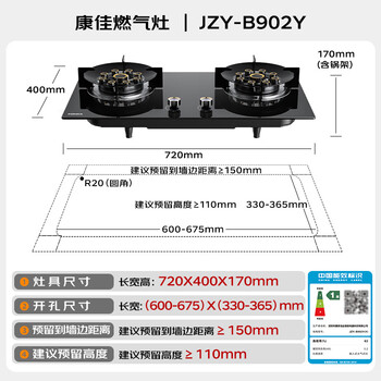 康佳(KONKA)燃气灶煤气灶双灶具 九腔5.2kW聚能猛火铜制小火盖 易洁面板台式嵌入式上门安装 JZY-B902Y