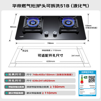华帝【液化气商品】燃气灶家用4.2kW猛火灶台式嵌入式煤气灶双灶台灶具i10051B