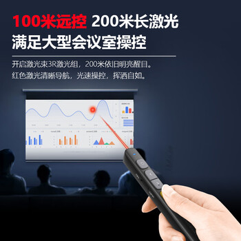 诺为100米遥控PPT翻页笔教师用 醒目按键激光笔 音量控制 无线演示器 投影笔 N29 红光 黑色