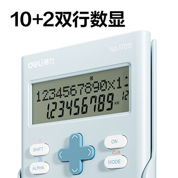 得力(deli)时尚款函数计算器 双行LCD大屏显示 240种功能考试计算机(适用于初高中)白1700
